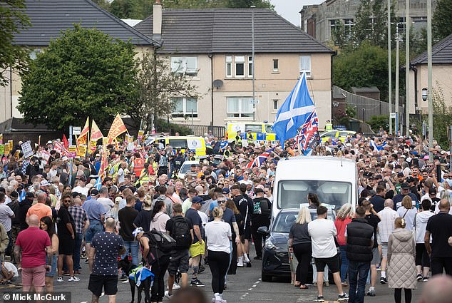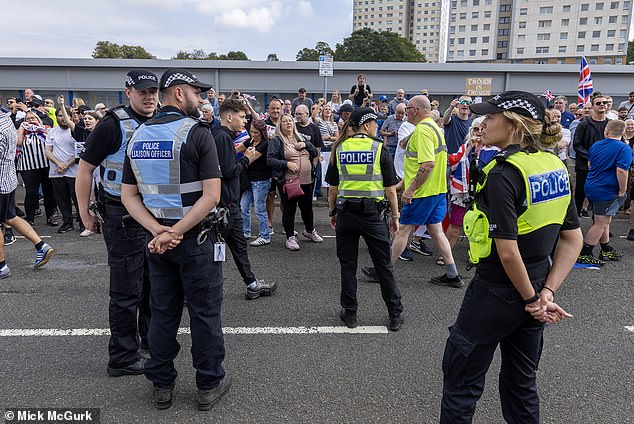 Police had to call in reinforcements as local residents and anti-racism groups clashed in angry scenes that saw bottles and other objects thrown outside the hotel in Falkirk which can hold more than 50 asylum seekers.