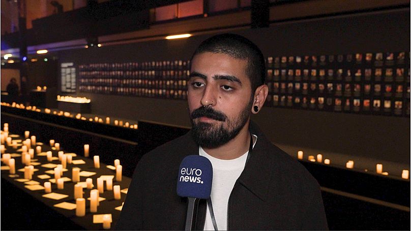 Euronews met Dray and Borok at the exhibition "October 7, 06:29 AM - The Moment Music Stood Still" at Berlin Tempelhof Airport.