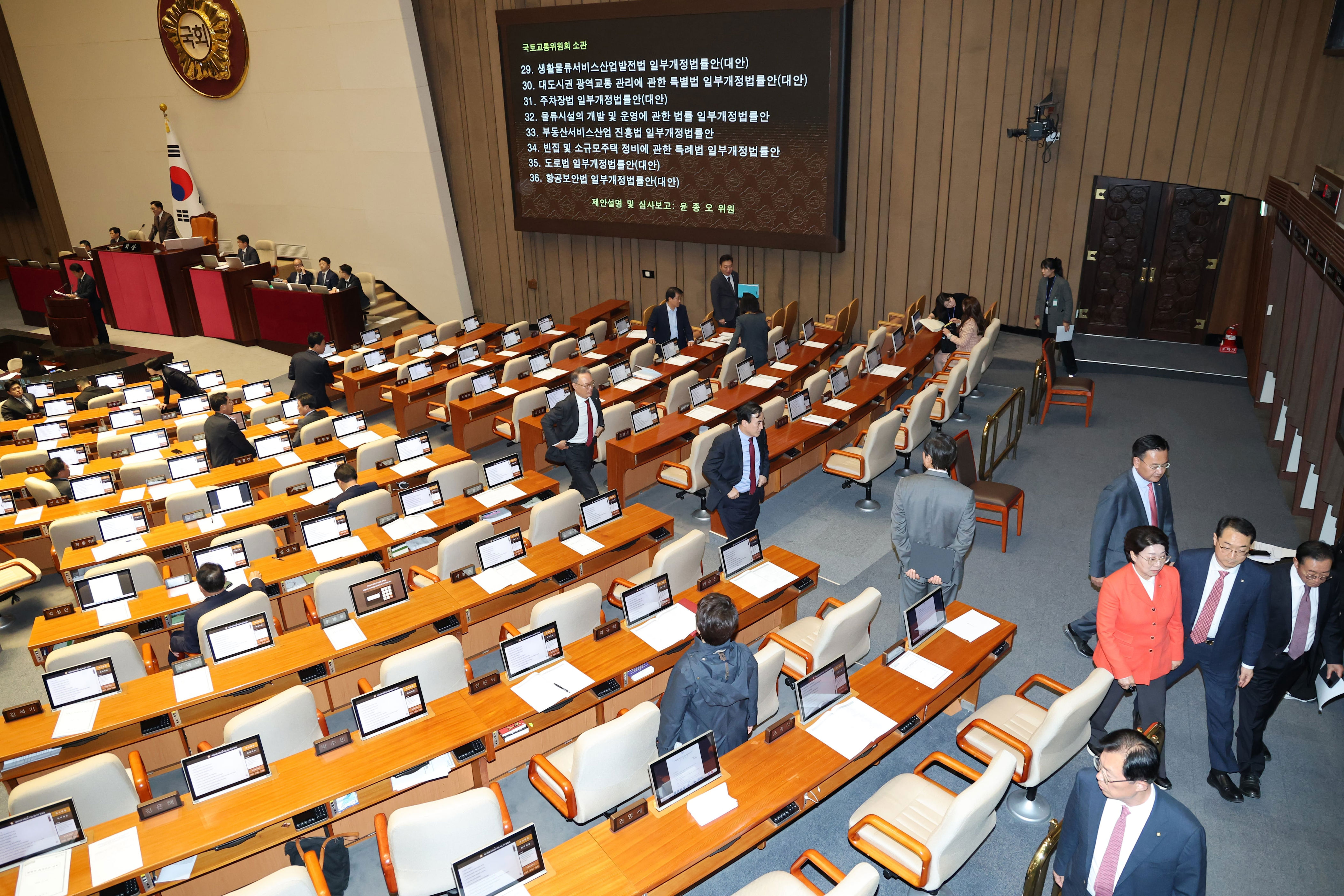 Song added, "The bill from the Land, Infrastructure and Transport Committee was up for a vote, but the minister wasn't present. If a member of the State Council can't attend, the Speaker must get approval from the floor leaders to allow their absence or replacement. However, I only found out about the minister's absence when the Speaker brought it up. I don't understand what could be more important than reviewing a bill during a plenary session."