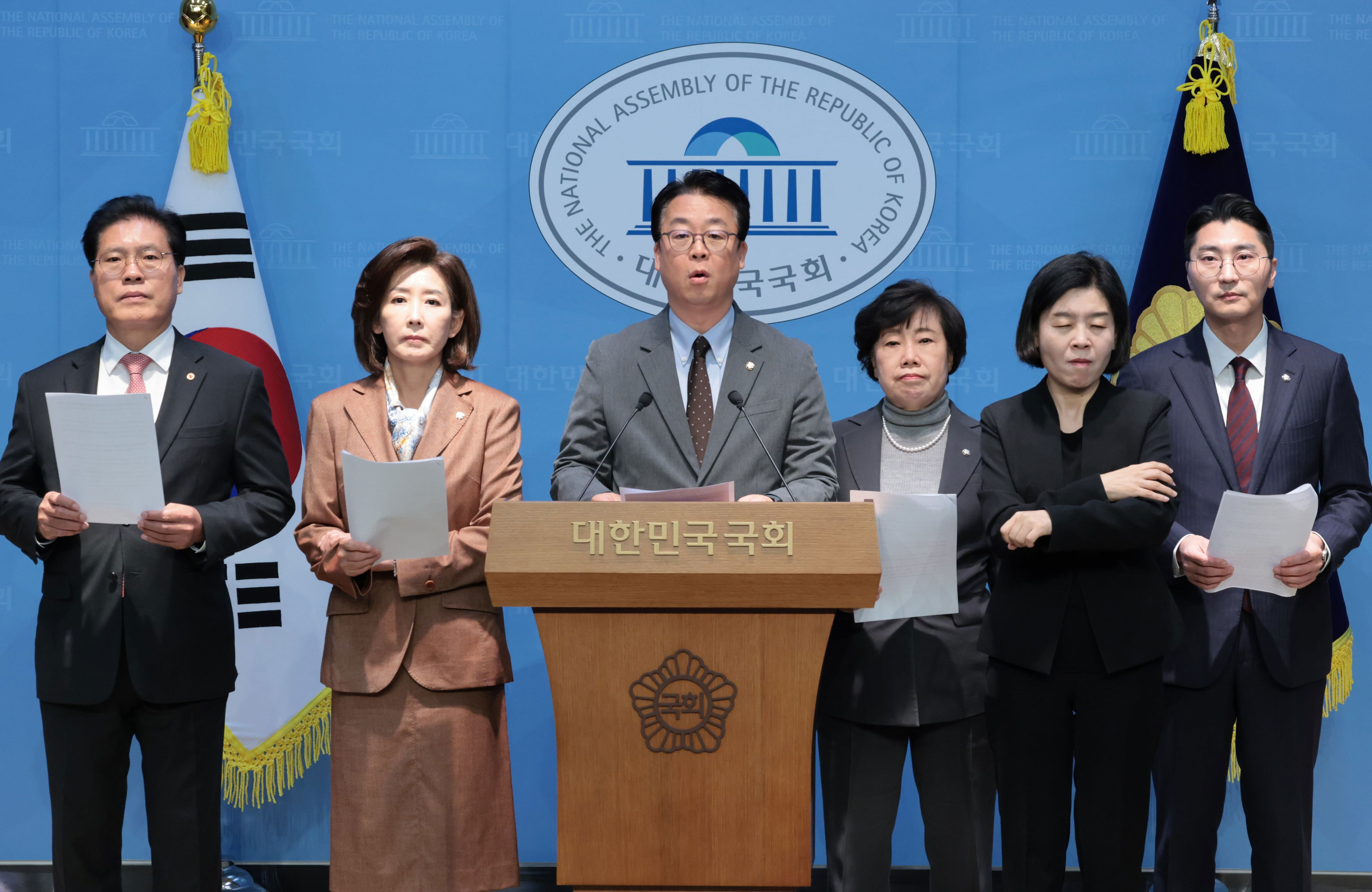 On the same day, lawmakers from the People Power Party including Na Kyung-won, Kwak Gyu-taek, Song Seok-joon, Jo Bae-sook, and Park Joon-tae submitted an amendment to the Criminal Procedure Act. The proposed legislation seeks to stop the unjust termination of ongoing prosecutions. Representative Kwak, who spearheaded the initiative, provided the reasoning: "There have been continuous efforts to dismiss the prosecution against President Lee Jae-myung." He further stated, "The existing 'prosecution dismissal system' was intended as a special measure applicable only when there are clear evidentiary mistakes or major procedural issues. However, in practice, it has faced criticism for being misused for non-legal reasons such as the interests of those in power or political motives, resulting in ongoing demands for its removal."
