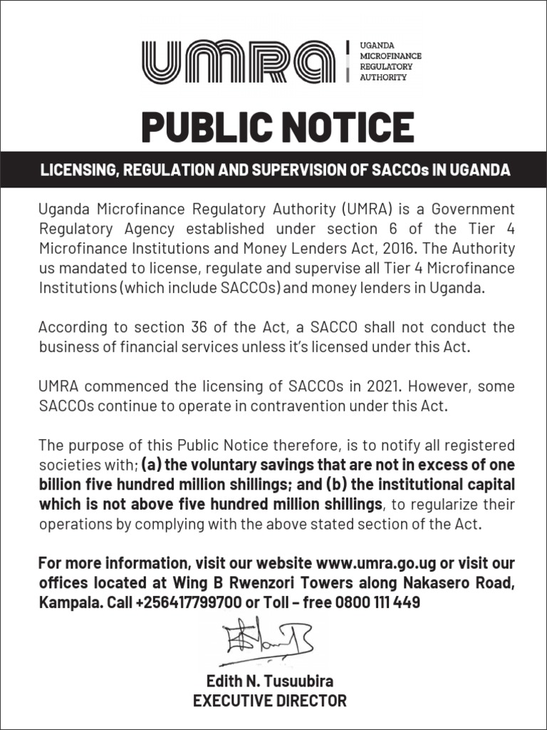 He stated that SACCOs are currently under the oversight of three organizations: the Ministry of Finance, which took over the responsibilities of the now-defunct Uganda Microfinance Regulatory Authority (UMRA); the Bank of Uganda, which aims to regulate larger SACCOs; and the Registrar of Cooperatives, who is responsible for registering and monitoring all SACCOs irrespective of their size.