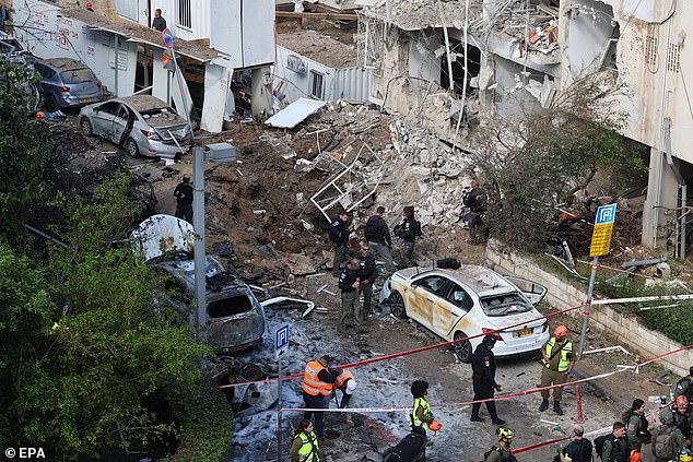 In Tel Aviv, a missile with a 100-kilogram warhead escaped Israeli defences to slam into a street in the centre of the city, blowing out windows of a neighbouring apartment building and sending smoke billowing.