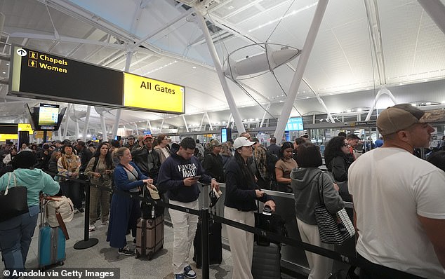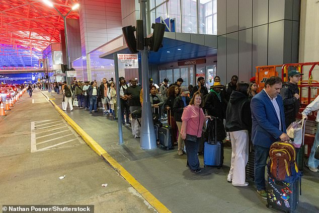 In a statement on Monday morning, JFK Airport officials blamed 'the federal funding lapse' for the huge backlogs.